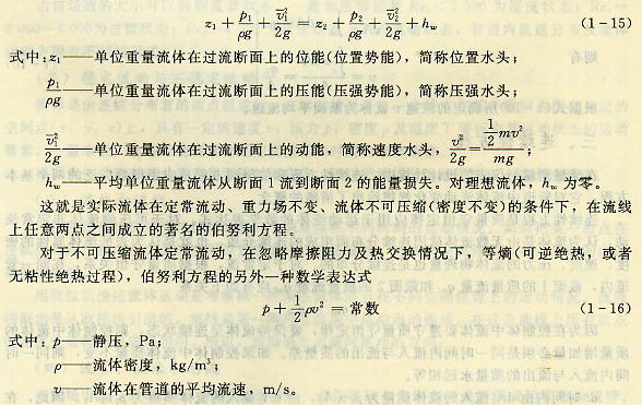 伯努利方程是能力守恒定律應用于流體力學的一種數學表達式,在工程流體力學基本理論中占有重要位置,它形式簡單、意義明確。在流體運動時,不同性質的機械能可以相互轉換,且總的機械能守恒(理想流體沒有能力損失)。因此流管中兩截面見有如下關系(在流體密度不變的前提下)